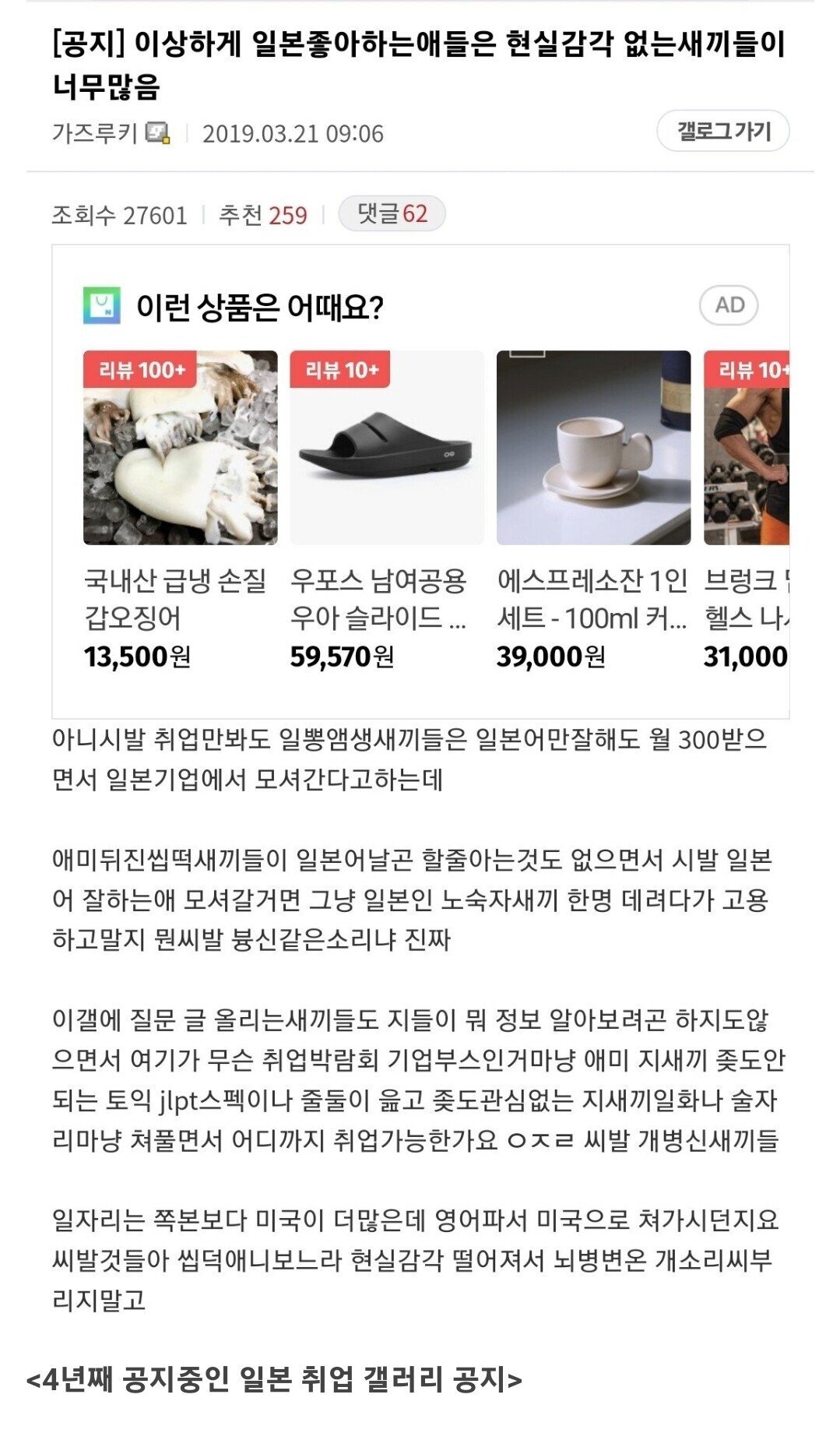 사실 그 분들의 글, 대부분 DC 같은 커뮤니티 글인데 일본 취업에 대해서 찾아보기는 했나 싶은 글이 많습니다. 실제로도 그냥 일본 갈 의사도 없고 의사는 있더라도 능력은 없는 경우가 태반이겠죠.
